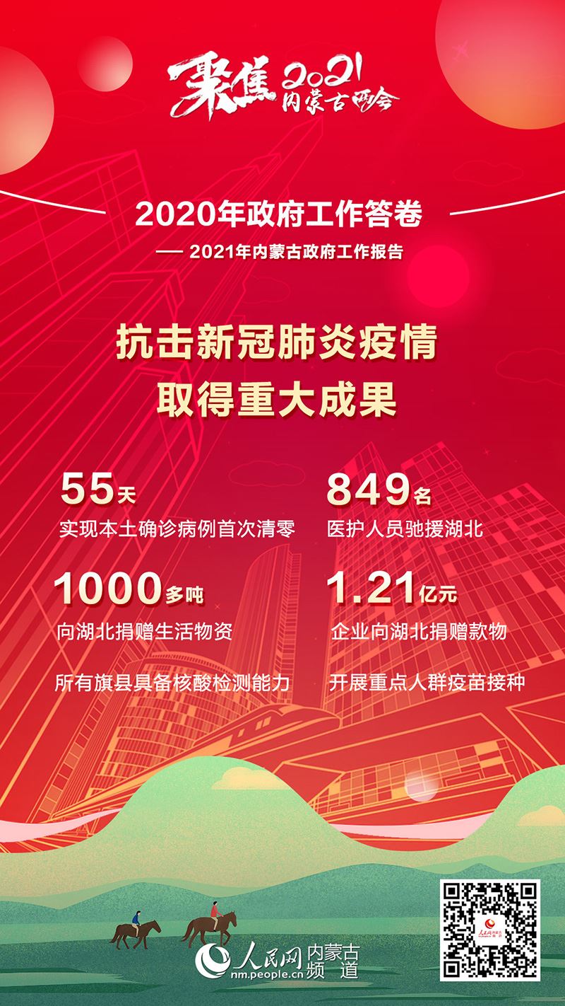 1月26日上午,內(nèi)蒙古自治區(qū)十三屆人大四次會(huì)議在內(nèi)蒙古人民會(huì)堂開(kāi)幕。自治區(qū)主席布小林作政府工作報(bào)告。2020年是極不平凡的一年,內(nèi)蒙古緊扣全面建成小康社會(huì)目標(biāo)任務(wù),堅(jiān)持穩(wěn)中求進(jìn)工作總基調(diào),堅(jiān)持以人民為中心,科學(xué)統(tǒng)籌疫情防控和經(jīng)濟(jì)社會(huì)發(fā)展,扎實(shí)做好“六穩(wěn)”工作,全面落實(shí)“六?!比蝿?wù),全區(qū)經(jīng)濟(jì)持續(xù)回穩(wěn),社會(huì)大局和諧穩(wěn)定,“十三五”規(guī)劃順利收官。2020年政府工作有哪些亮點(diǎn)?看內(nèi)蒙古書寫這份精彩答卷!