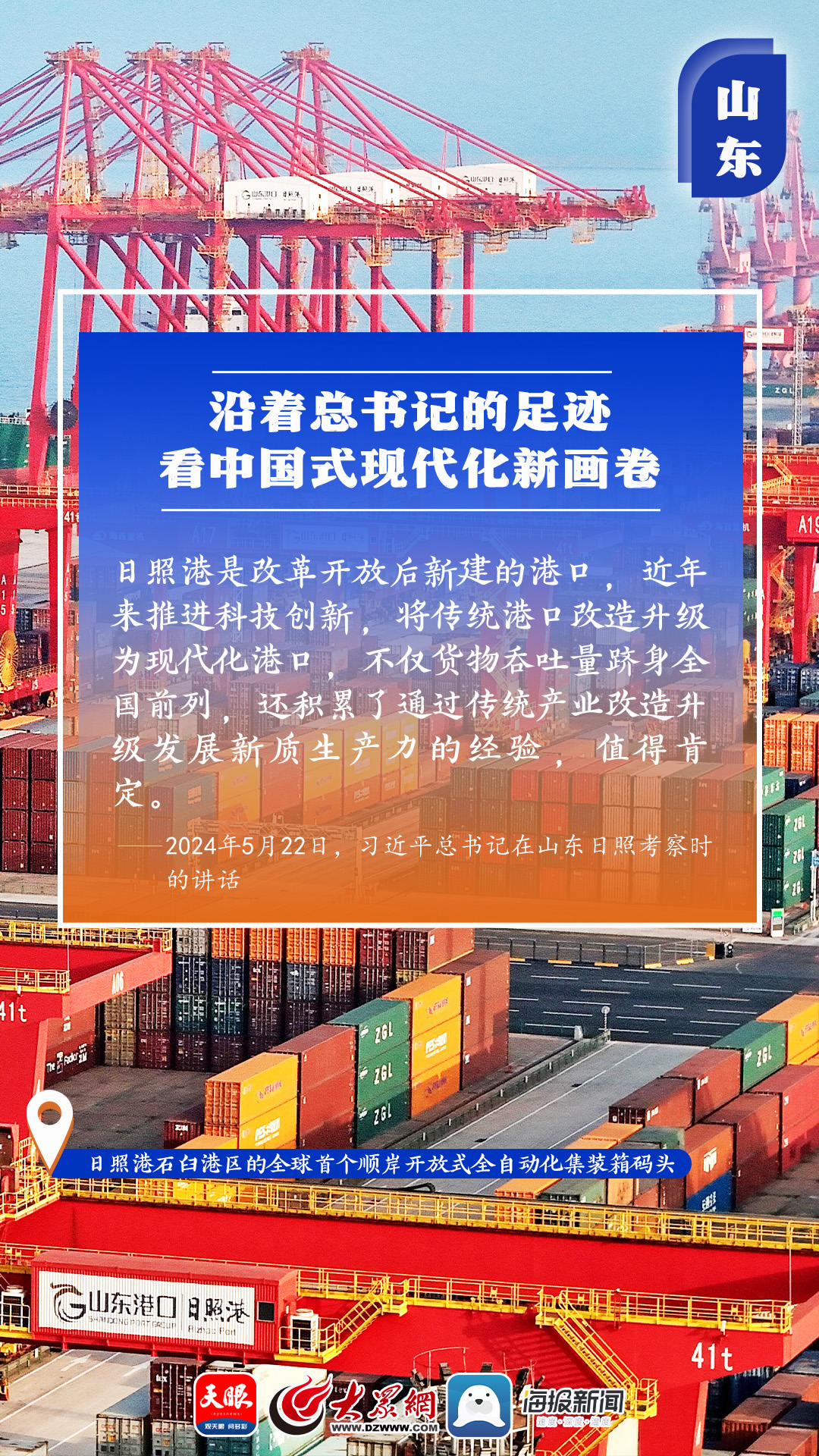 2024年12月27日,山東沿海港口貨物吞吐量超20億噸。全國首個大宗干散貨智慧綠色示范港口一階段在日照港建成投用。