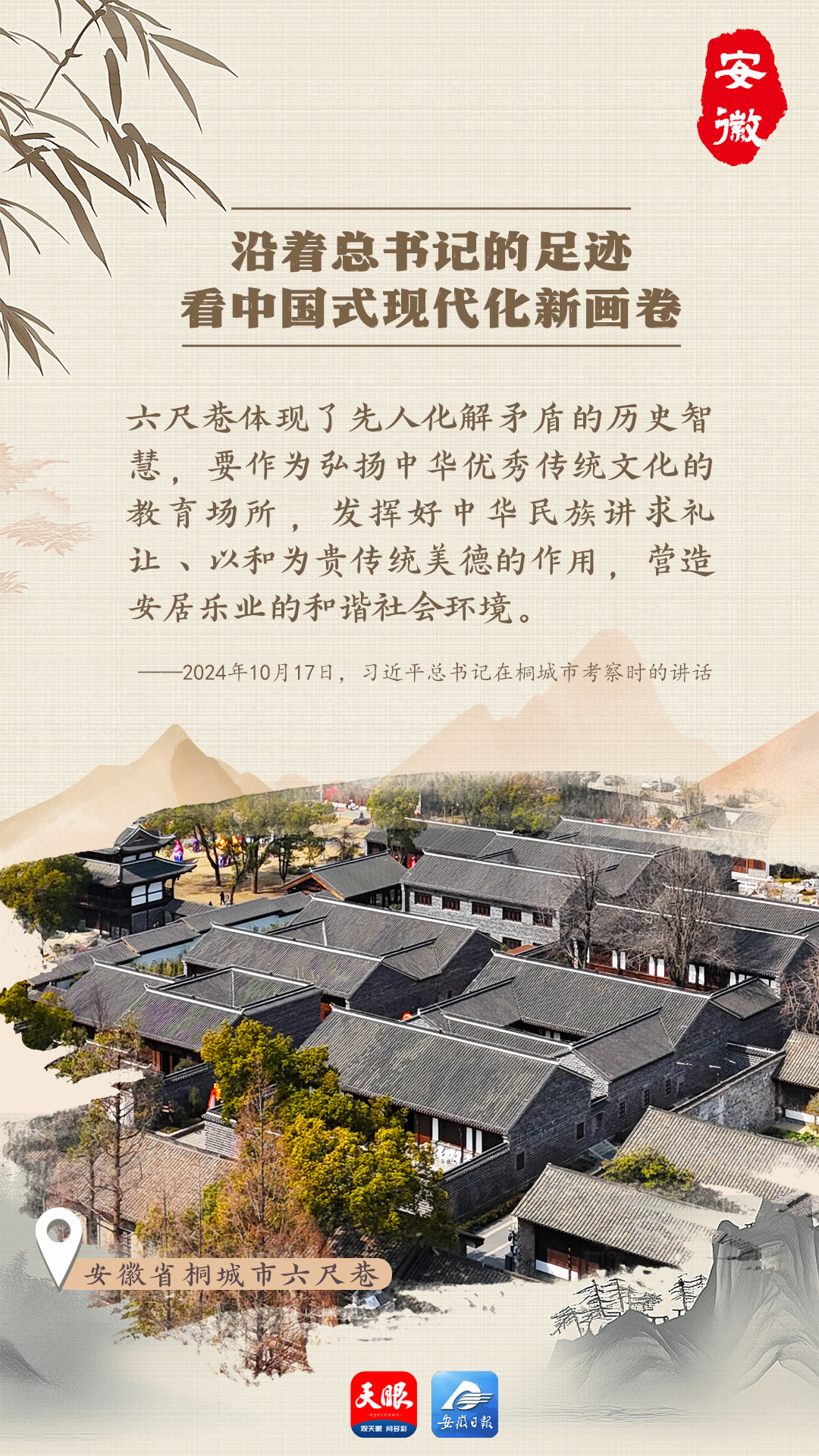 在桐城市六尺巷景區(qū),歷史與現(xiàn)代交織成一幅獨特畫卷。這里傳承三百多年的“禮讓文化”生生不息,文物在數(shù)字技術(shù)助力下“鮮活”起來。2024年10月17日,習(xí)近平總書記親臨桐城市考察并作出重要講話,為當(dāng)?shù)匕l(fā)展注入強大動力。