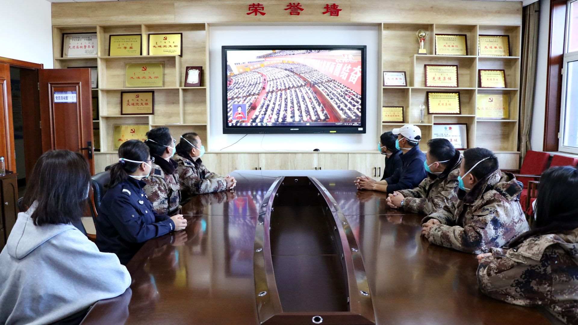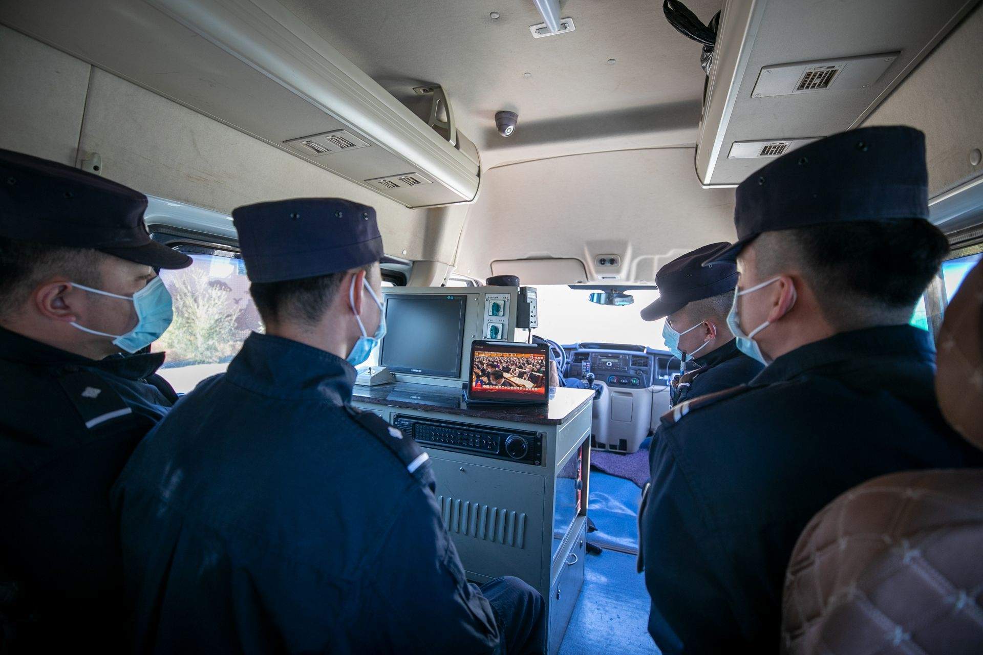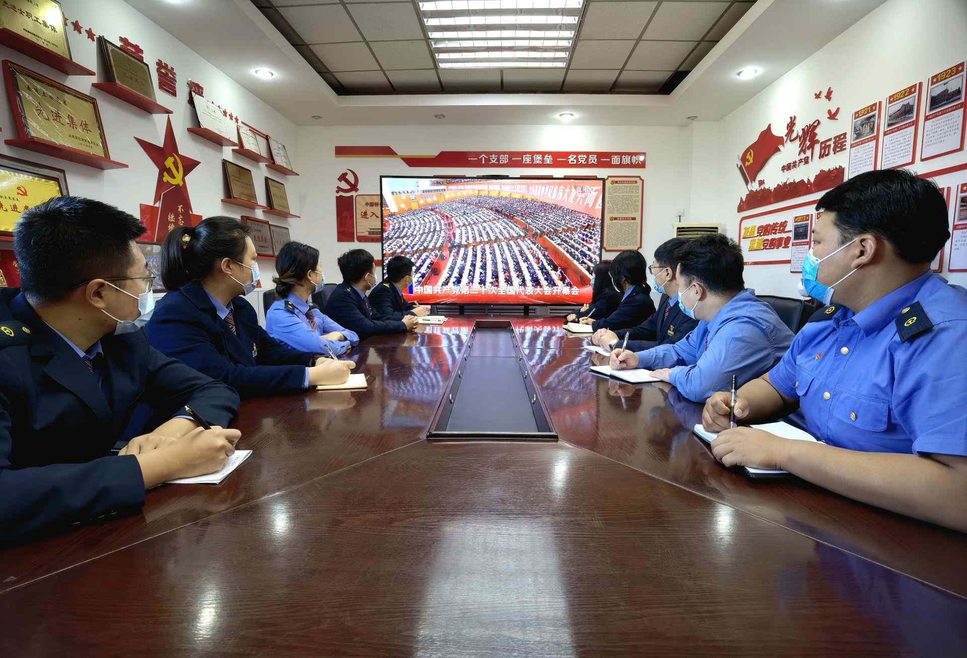 二連出入境邊防檢查站民警收看黨的二十大開幕會(huì)。郭鵬杰攝