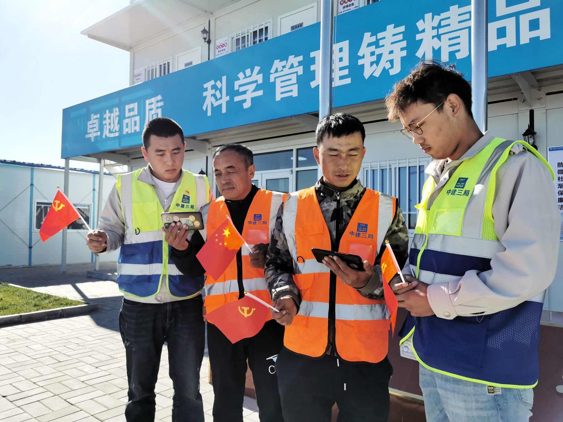 中建三局呼和浩特建設(shè)項(xiàng)目施工人員收看黨的二十大開幕會(huì)。曹楨攝