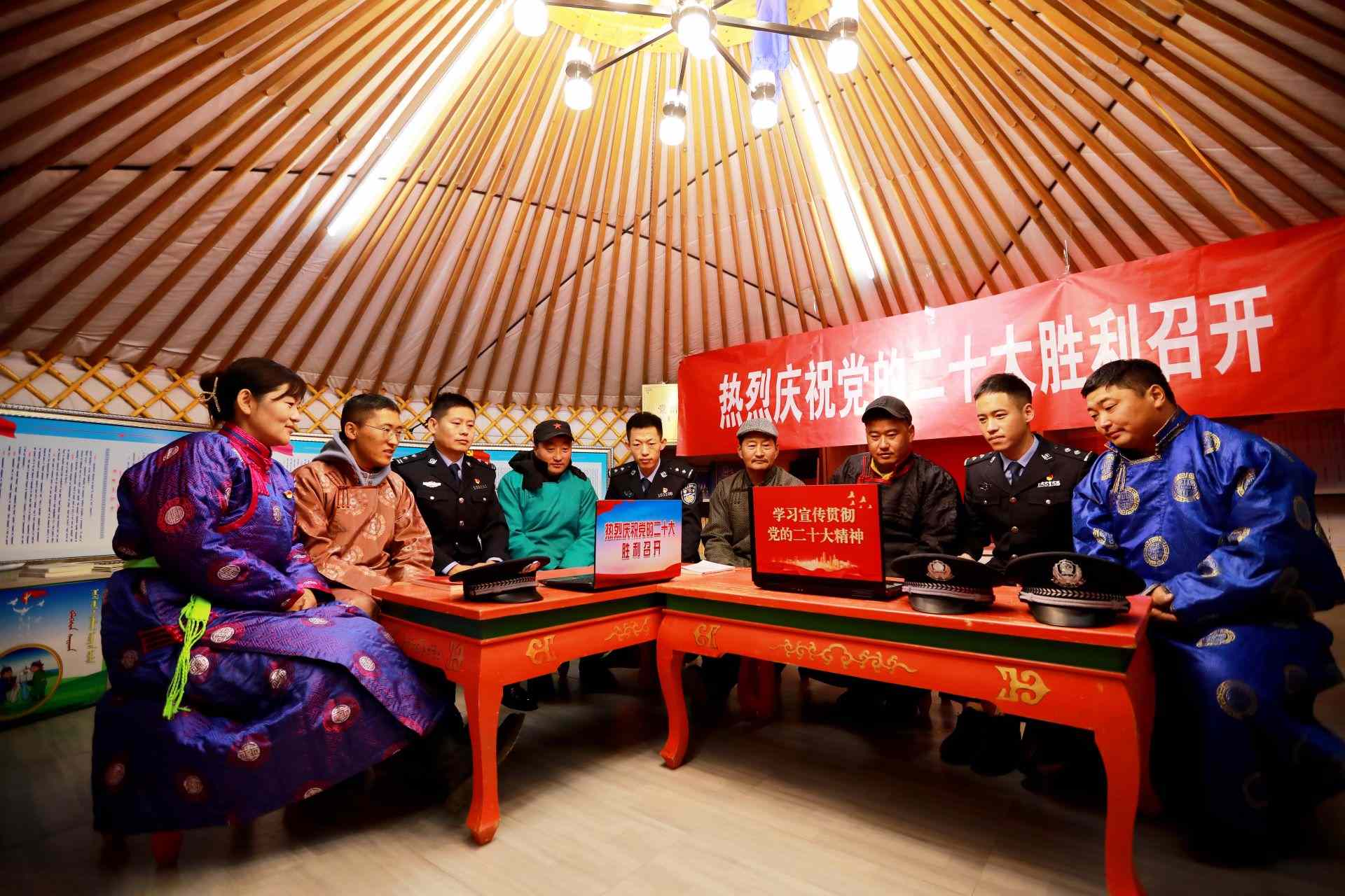 蘇尼特左旗邊境管理大隊(duì)民警與群眾一同收看黨的二十大開幕會(huì)。任利勇攝