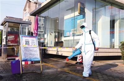 “您好,這是小區(qū)住戶購買的食品,可以幫忙送進(jìn)去嗎?”“沒問題,我們對包裹消殺后給您送進(jìn)去?!痹谛^(qū)門口,城管的工作人員將經(jīng)過消殺的包裹送到了警戒線內(nèi),再由物業(yè)保安送到小區(qū)內(nèi)部。“目前小區(qū)處于封閉狀態(tài),我們在小區(qū)門口設(shè)置了三道防線,門口警戒線、消殺區(qū)域及居民取物資警戒線,所有進(jìn)出入小區(qū)的人員物品都要進(jìn)行防疫消殺。同時我們也按照疫情防控指揮部的統(tǒng)一要求,對小區(qū)內(nèi)部每天定時進(jìn)行消殺和垃圾清運工作?!睒蛉A世紀(jì)村·紫華園小區(qū)富華物業(yè)的保安隊長趙文忠向記者介紹。