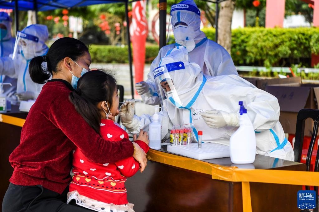 2月16日,在廣西百色市德保縣,醫(yī)務(wù)人員在做核酸采樣。目前,百色疫情社區(qū)傳播鏈基本阻斷,社會(huì)面基本實(shí)現(xiàn)清零。新華社記者 曹祎銘 攝