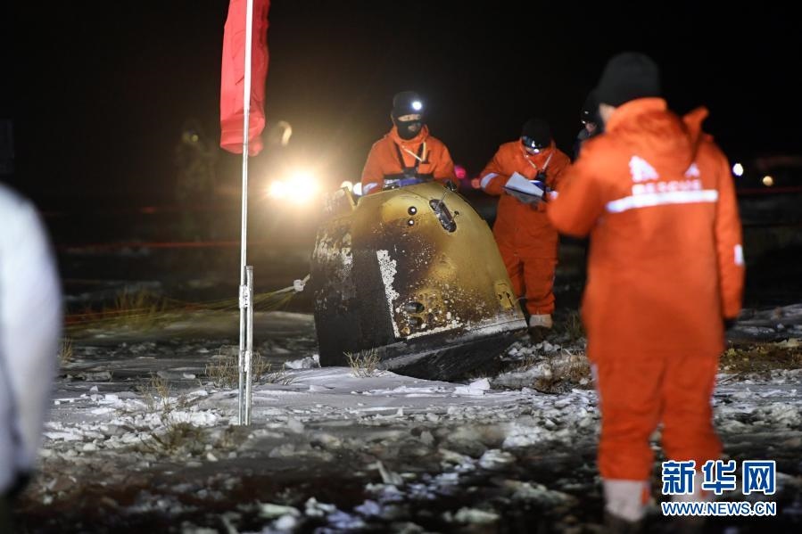 12月17日凌晨,嫦娥五號返回器攜帶月球樣品,采用半彈道跳躍方式再入返回,在內(nèi)蒙古四子王旗預定區(qū)域安全著陸。新華社記者 任軍川 連振 彭源 攝