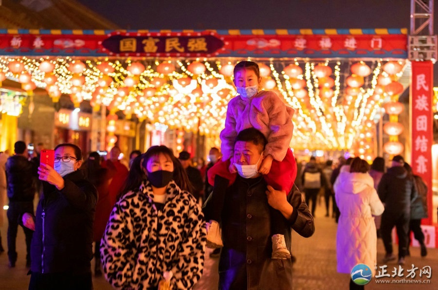 2月13日,呼和浩特市,人們在大召廣場游玩。當(dāng)日是大年初二,人們與親朋好友結(jié)伴出行,逛景點、吃小吃,放松心情,享受春節(jié)假期。內(nèi)蒙古日報社融媒體記者 孟和朝魯 攝 -